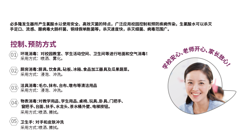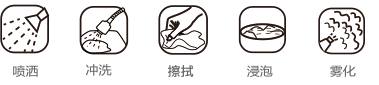 方式:雾化、擦拭、喷洒1-5分钟晾干、擦干。